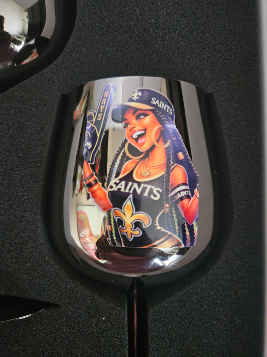 New Orleans Saints UV Print Custom Stainless Steel Wine Glass Set